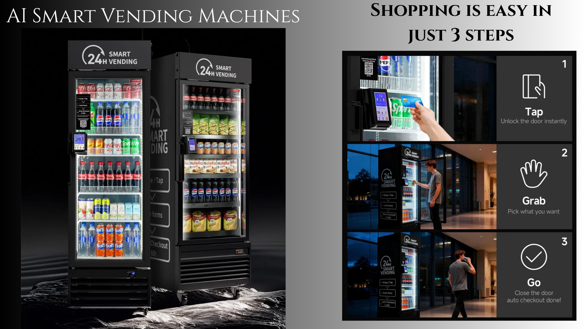 We provide you with modern Al-enabled vending machines manufactured by a trusted, well-established company. Each machine is selected to match your specific needs. We determine the most efficient machine size and configuration by considering factors such as foot traffic, the number of staff, visitors, and customers, as well as the space available at your location.